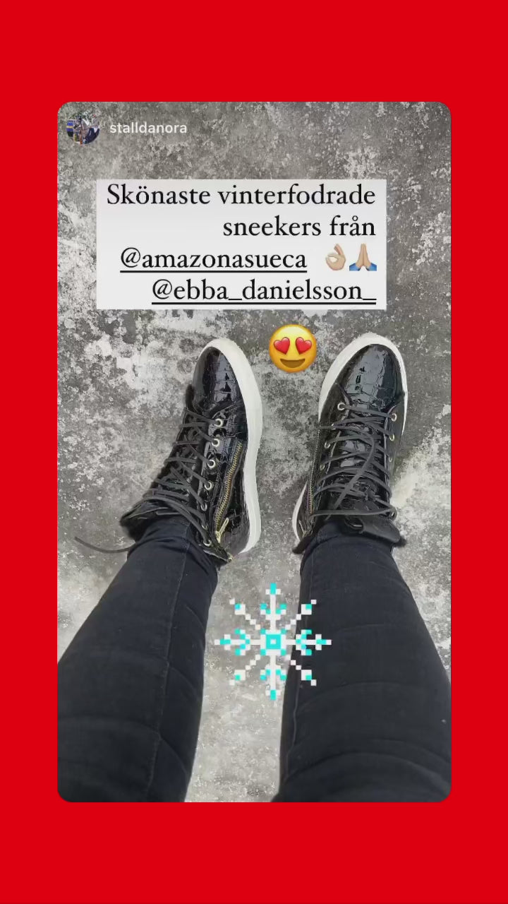 Imagine a sneaker that feels like a soft embrace for your feet – yet turns heads with its striking design. Our sheepskin-lined high tops in Black Croco Gloss combine luxury and function in one, created for those who want to move through everyday life with both comfort and style.